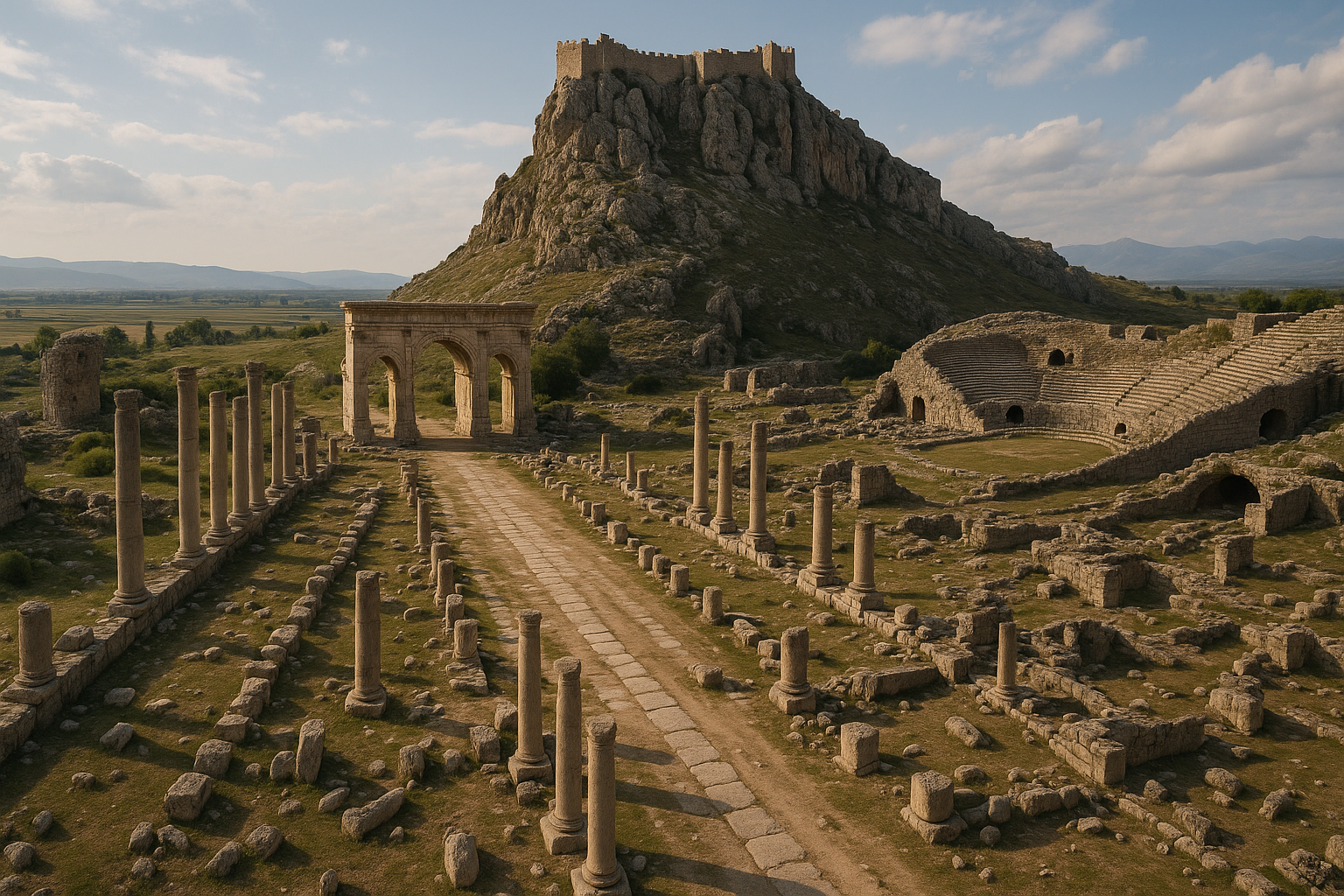 - Triumphal Arch (Ala Kapı): A monumental three-arched entrance gate dating to the 3rd century AD.