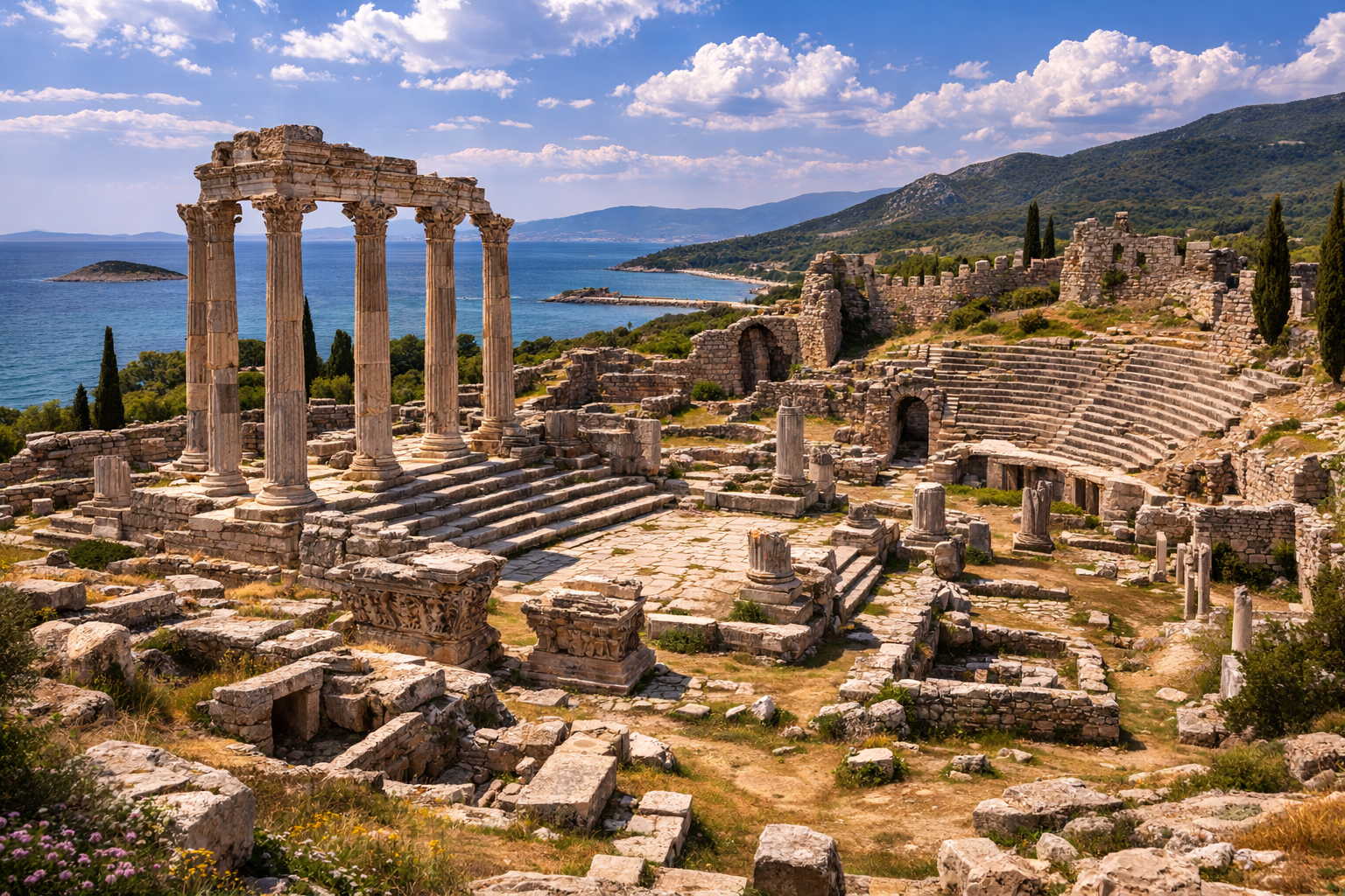 Quick Summary: The ancient city of Cyzicus (Greek: Κύζικος) stood on the southern shore of the Propontis (Sea of Marmara), near the modern town of Erdek in northwestern Turkey. Founded in the 8th century BC as an Aeolian–Milesian colony, it soon became one of the most powerful maritime cities of the region thanks to its position on the narrow isthmus connecting the Kapıdağ Peninsula to the mainland.