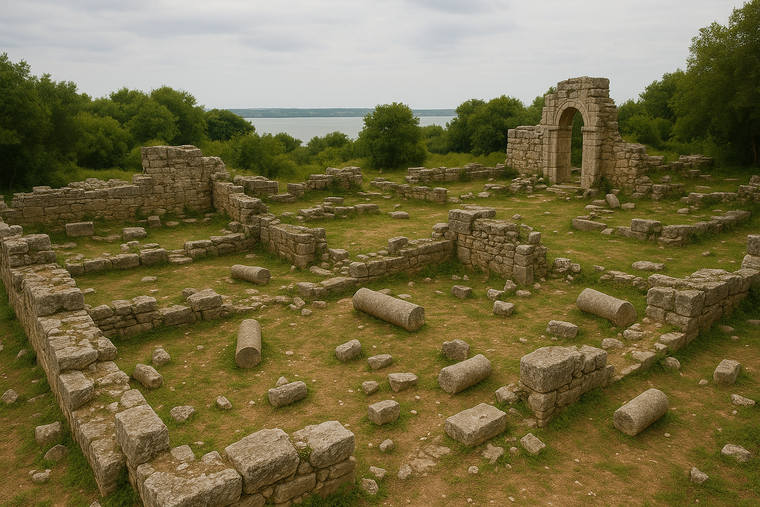 The archaeological site known as Bathonea lies on the northwestern shore of Lake Küçükçekmece, on the Firuzköy Peninsula in Istanbul’s Avcılar district, about 20 km west of the historical city center. Excavations have revealed that it functioned as a major harbor settlement in the Late Roman and Early Byzantine periods, closely linked to Constantinople.