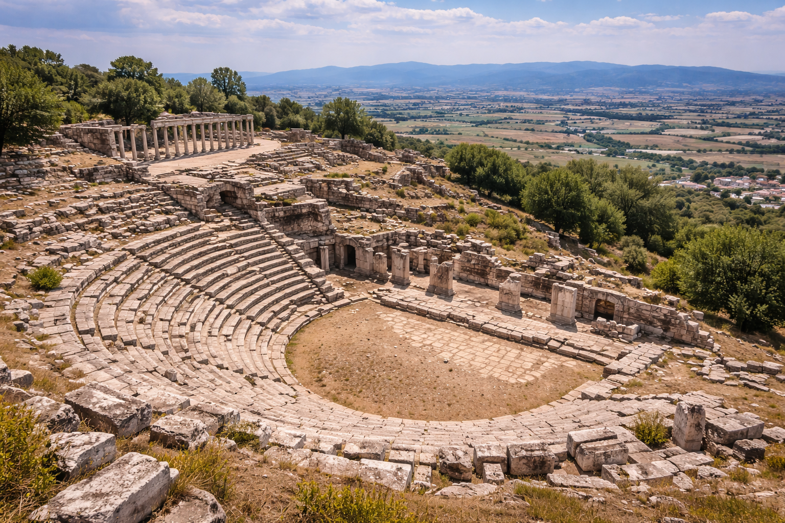 Quick Summary: The ancient city of Metropolis lies on the slopes of a hill between the villages of Yeniköy and Özbey in the district of Torbalı, about 40–45 km southeast of İzmir and roughly 30 km from Ephesus. Overlooking the Kaystros (Küçük Menderes) River plain, the site controlled the routes linking the Aegean coast with the inland valleys, making it a strategic node between the Ionian coastal cities and the interior of western Anatolia.